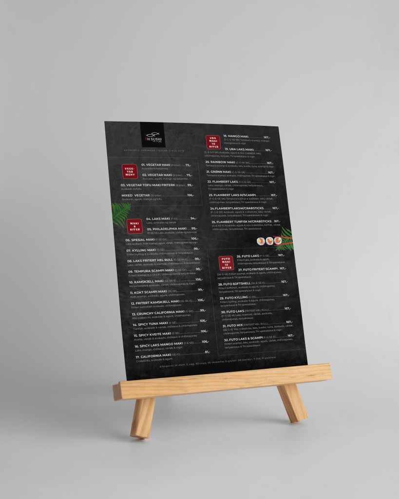 After the corona pandemic, TH sushi wants to develop on-site dining services instead of just serving take-away like before. They wanted an eye-catching 2 menus designed to impress viewers. The menus should have both images and text.